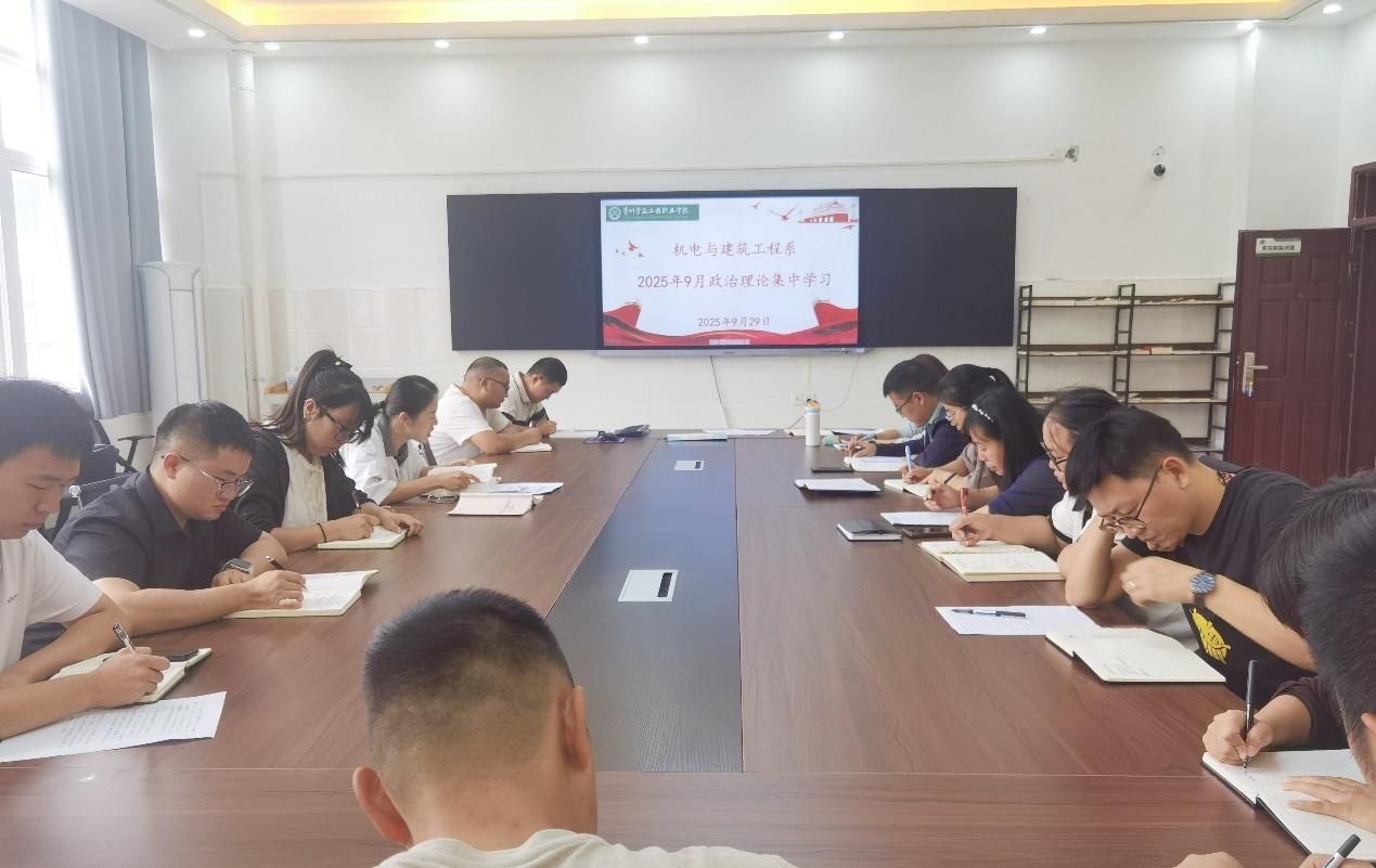 9月29日,机电与建筑工程系在丘明楼3栋3308会议室组织开展9月政治理论集中学习,系党总支副书记乔月音主持学习并讲话,系副主任郑位友及全体教师参加学习。